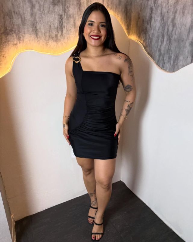 Este mini vestido preto é a peça chave para um visual sensual, moderno e cheio de personalidade. A modelagem bodycon e o detalhe sofisticado na alça garantem que você esteja pronta para qualquer evento noturno com elegância.