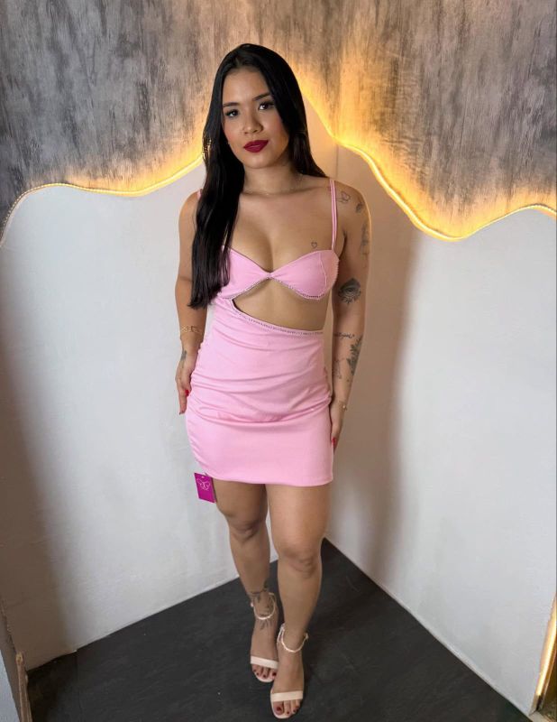 Este vestido é a peça perfeita para quem busca um visual ultrafeminino, sensual e com um toque de glamour. O design de recortes é super moderno e a aplicação de brilho garante que você será o destaque da noite.